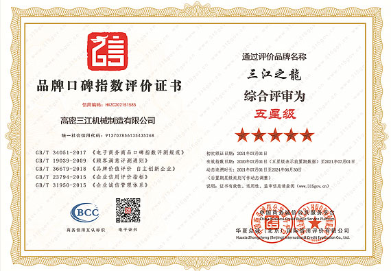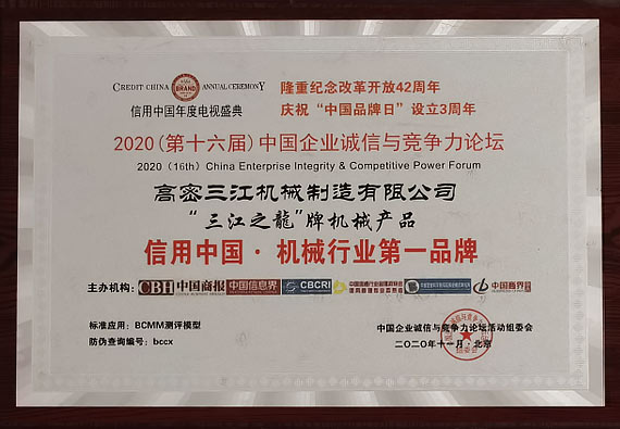 “三江之龍®”是高密三江2005年就开始注册使用的品牌商标,已经成为锻压行业知名品牌,多次荣获商务部、信用中国、中国企业品牌评价中心等政府、行业协会的表彰,受到各行业客户的充分肯定和广泛赞誉。